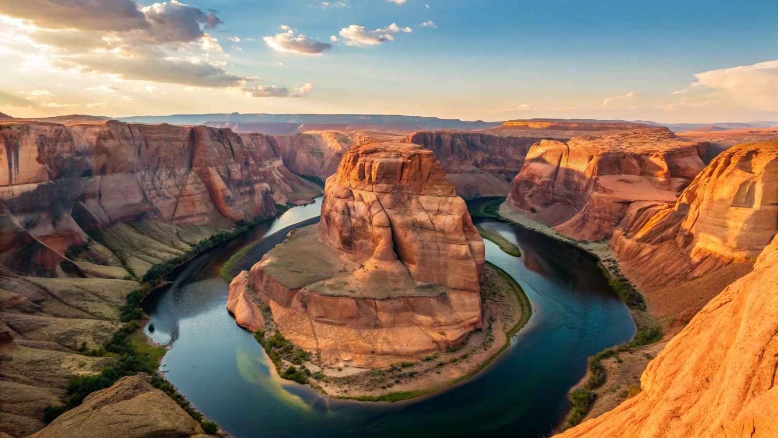 Just a short drive from Antelope Canyon, Horseshoe Bend offers one of the most jaw-dropping views in the Southwest. The Colorado River makes a perfect U-shaped curve here, wrapping around a sandstone mesa in a way that looks almost unreal. Standing at the edge, the view stretches out for miles, with the emerald river cutting sharply against the red canyon walls.