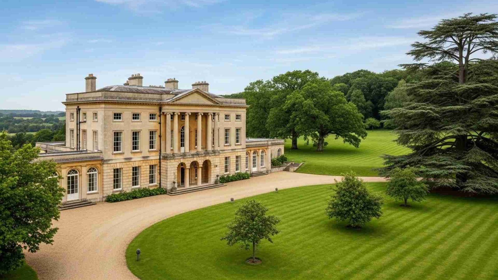 it’s right under the nose of London (12 miles north of Hyde Park Corner) yet manages to feel remoteYou arrive via the curved driveway through wrought-iron gates, the stately façade ahead catches the light late afternoon, and you realise why directors keep coming here. Then you wander into the park and look westwards to the distant countryside beyond the gardens. That view through the valley gives you pause.