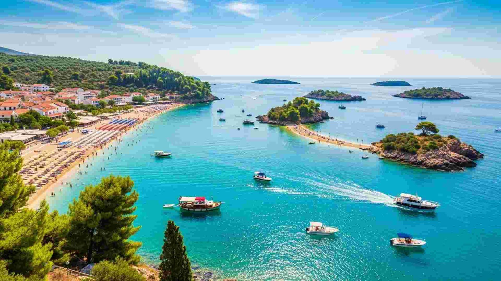 This one feels like stumbling on a Greek-island look-alike and realising you’re somewhere fresh. Ksamil lies on the Albanian Riviera, with small islands offshore and turquoise water. But here’s the twist: it’s compact, still a little rough around the edges, and the beaches can get packed. For example: it’s only about 12 km south of Sarandë.